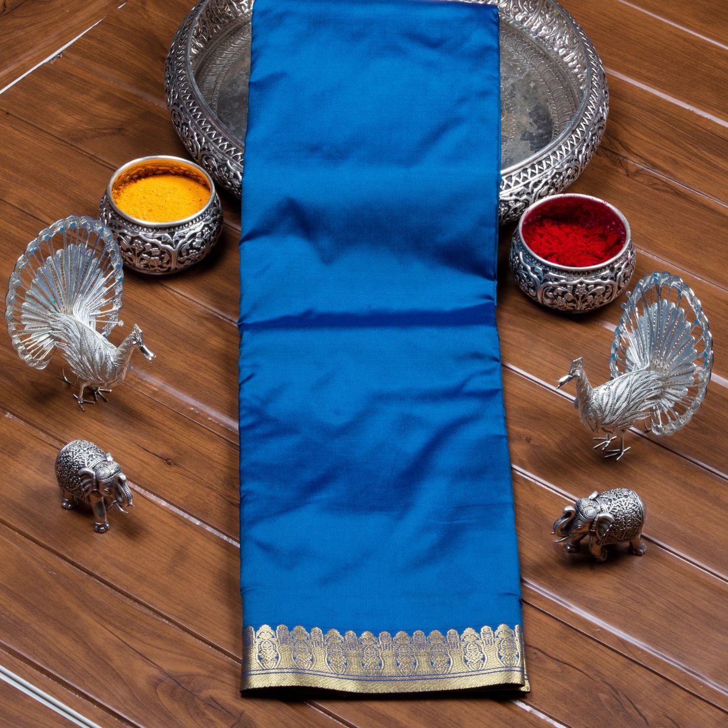 Kanchipuram Banarasi Dark Sky Blue Silk Saree | KA10084