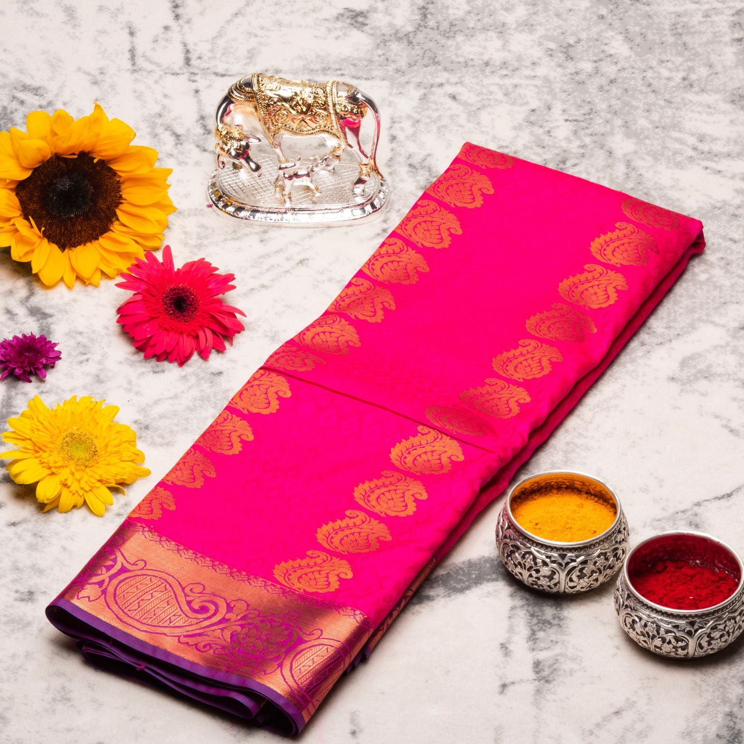 Kanchipuram Cotton Barbie Pink Silk Saree | KA10136