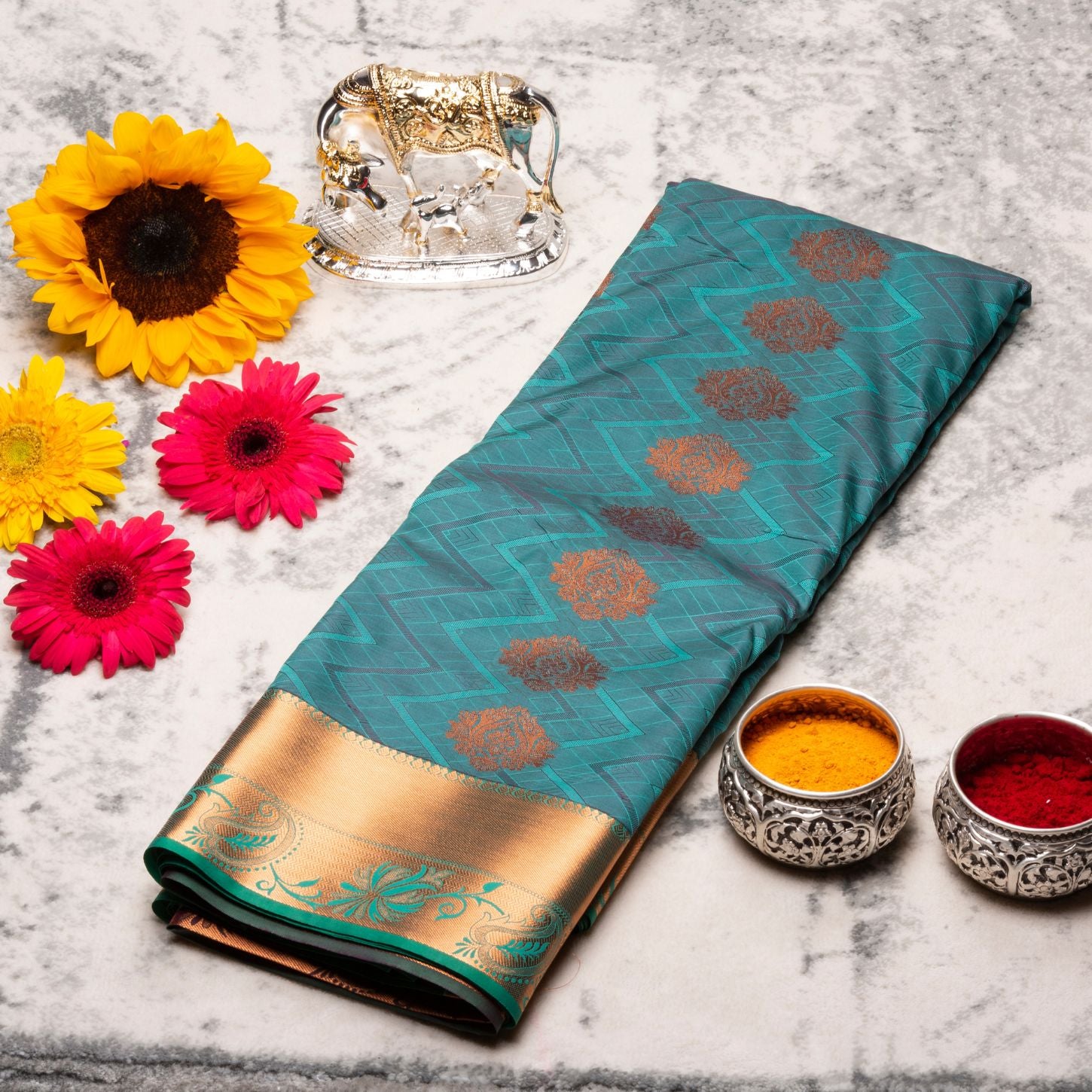 Kanchipuram Cotton Robin Green Silk Saree | KA10202