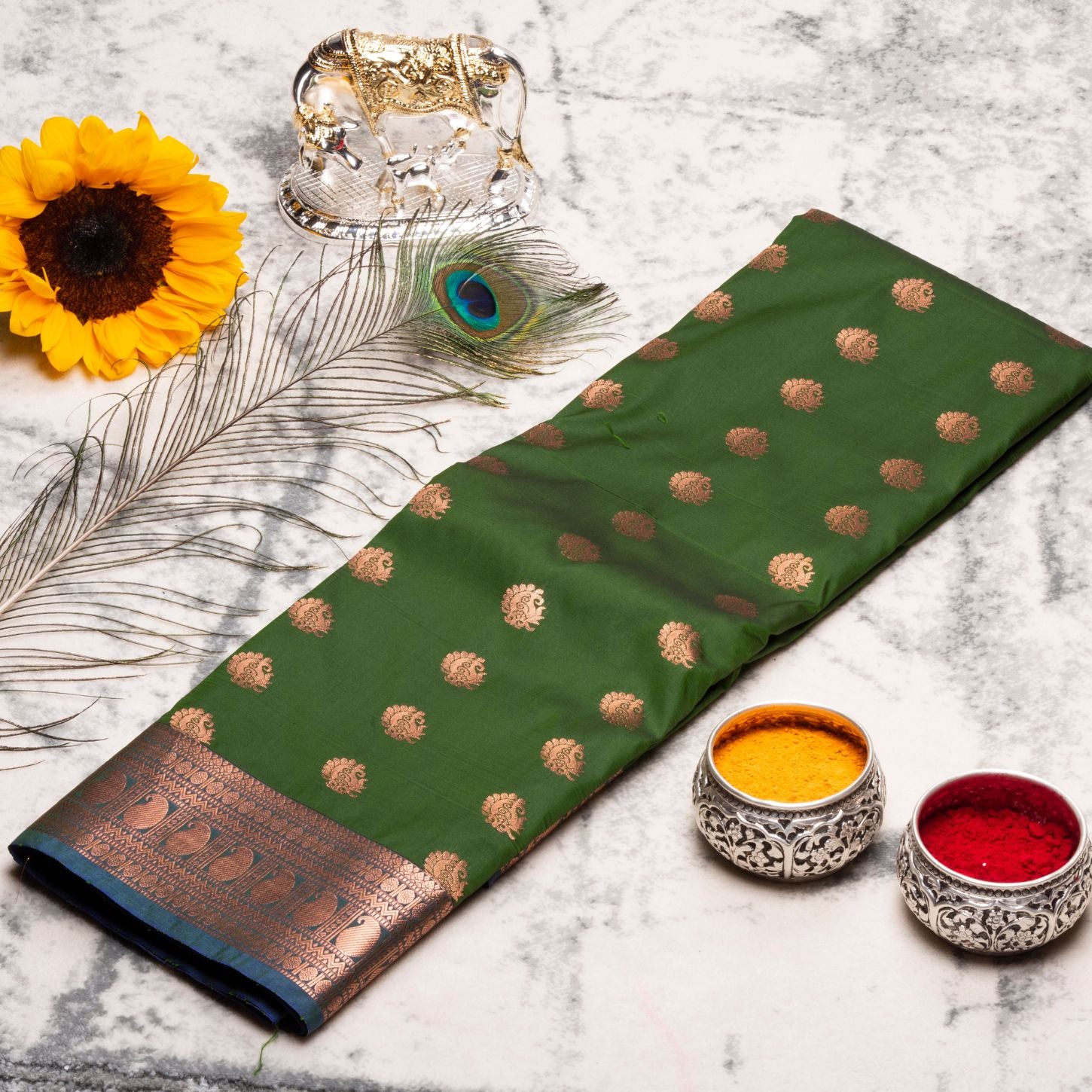 Kanchipuram Cotton Army Green Silk Saree | KA10206