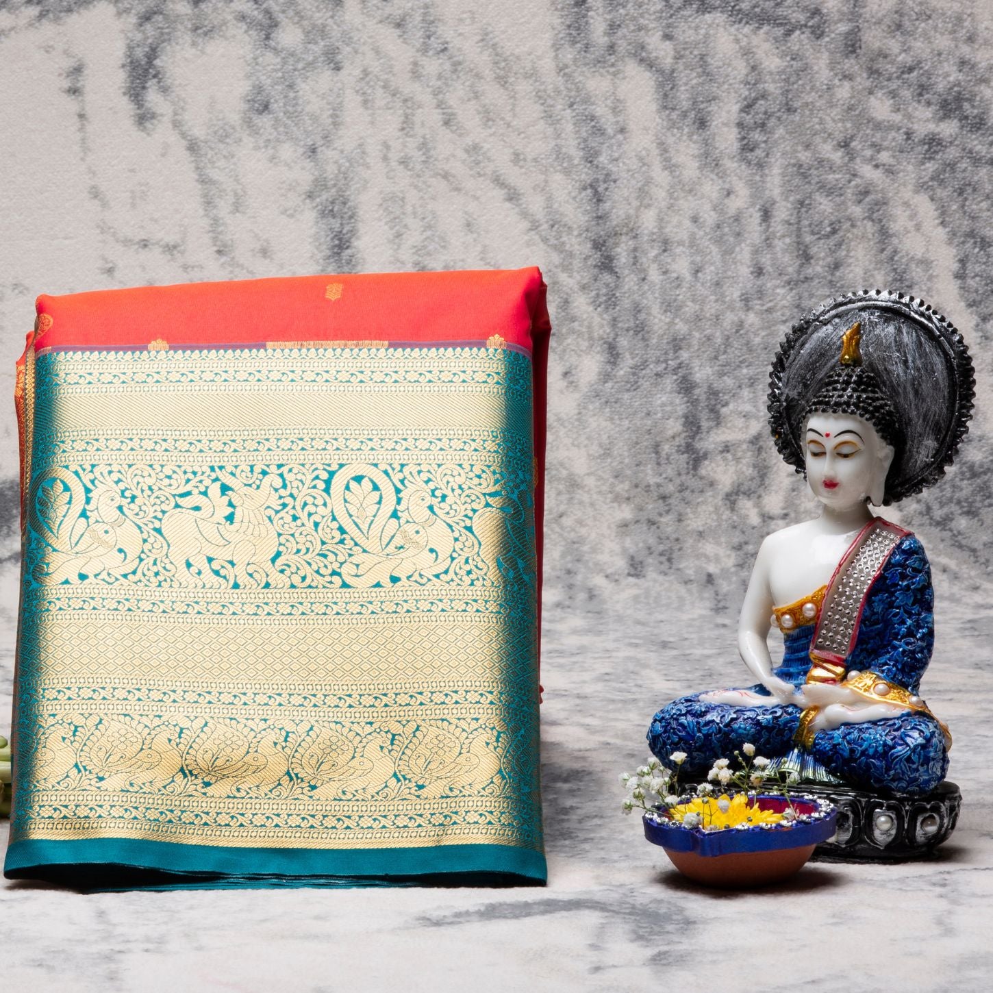 Big Border With Golden Gold Zary With Big Peacock Butta And Contrast Blouse With Rich Pallu