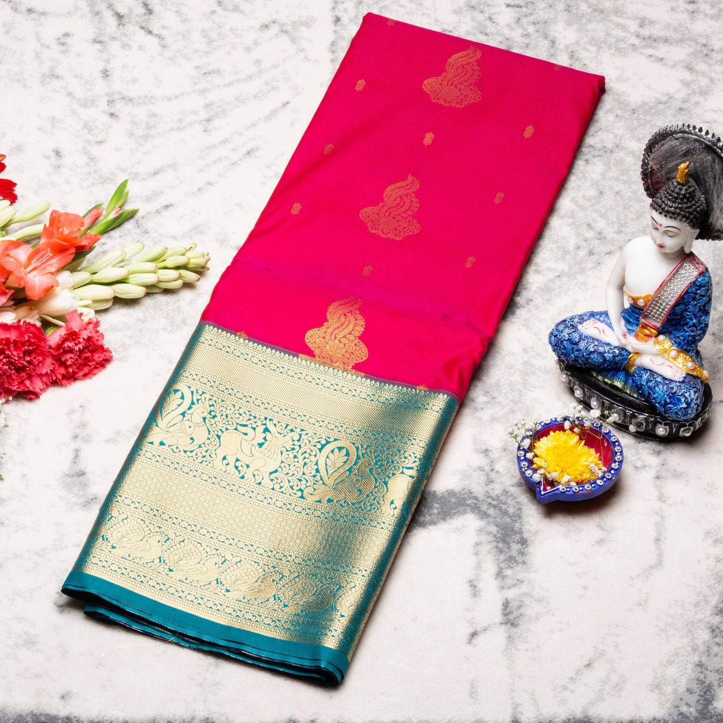 Kanchipuram Pure Pink Silk Saree | KA10158