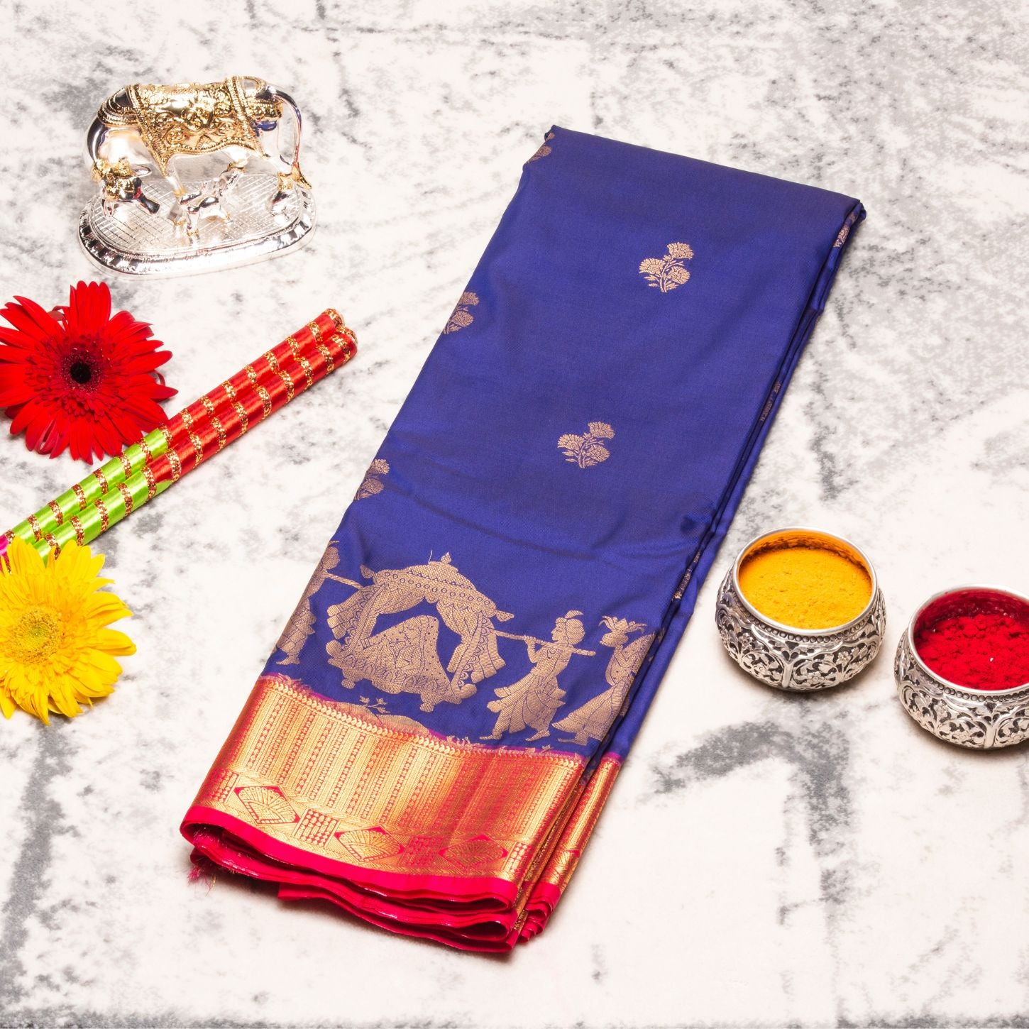 Kanchipuram Pure Blue Silk Saree | KA10163