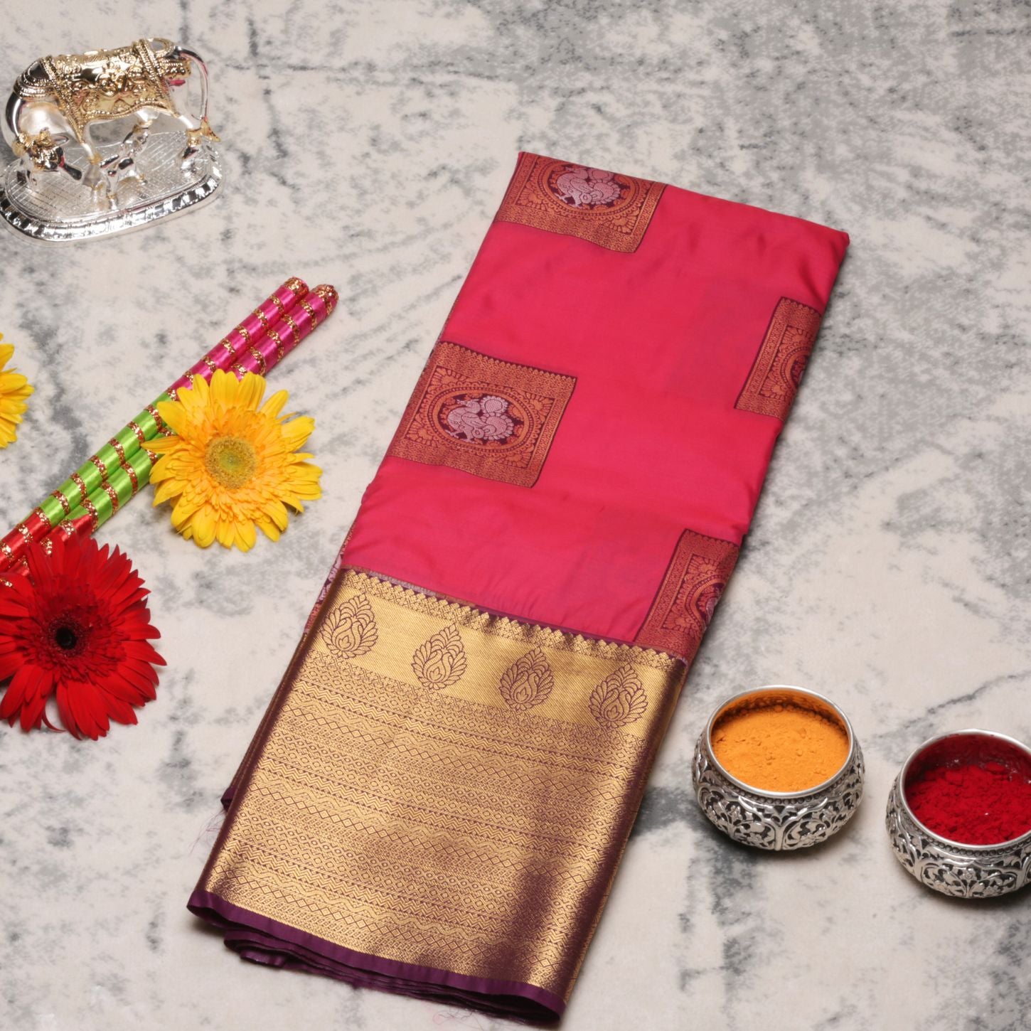 Kanchipuram Pure Ruby Red Silk Saree | KA10223