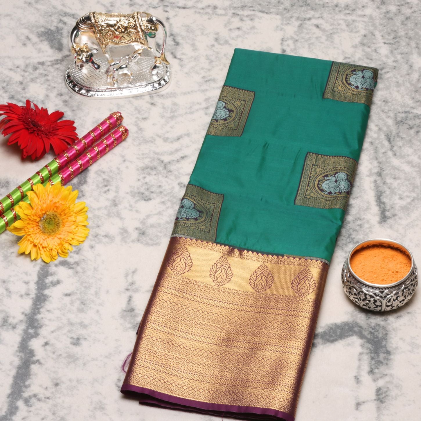 Kanchipuram Pure Emerald Green Silk Saree | KA10226