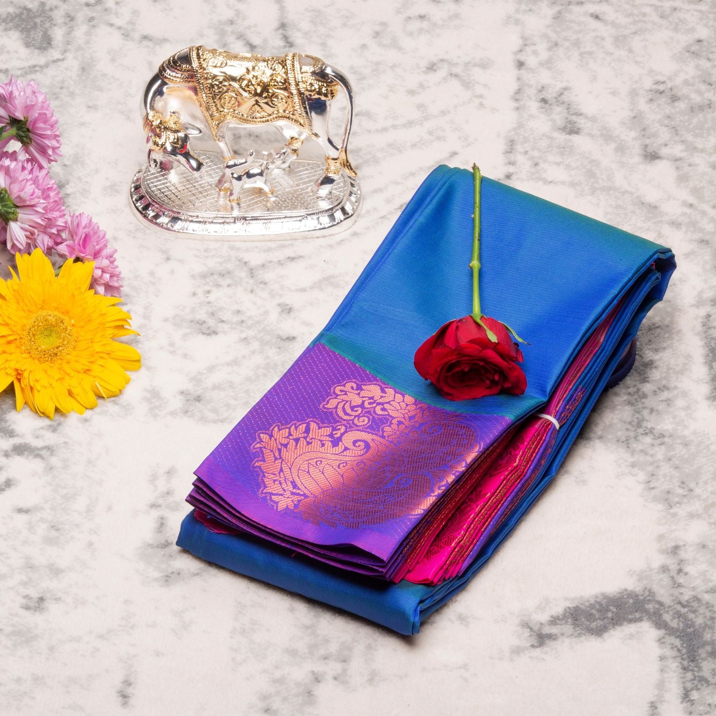 Kanchipuram Soft Silk Lite Persian Blue Silk Saree | KA10017