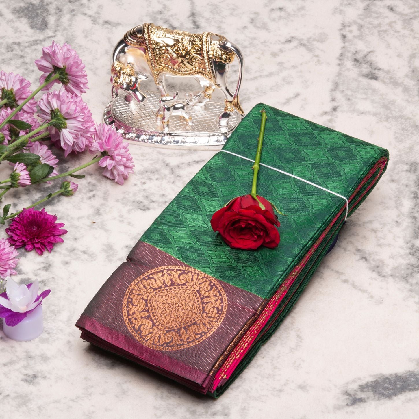 Kanchipuram Soft Lite Hunted Green Silk Saree | KA10018