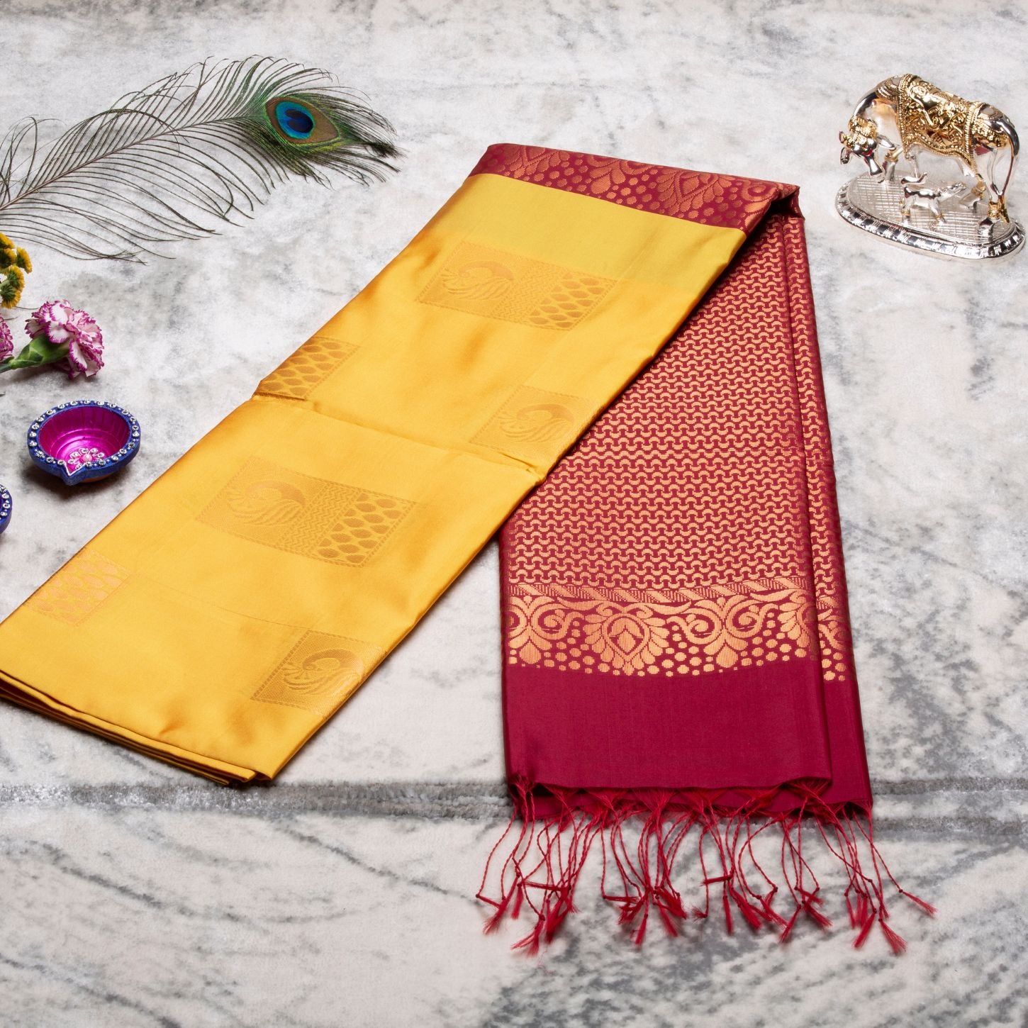 Kanchipuram Thread Yellow Silk Saree | KA10021