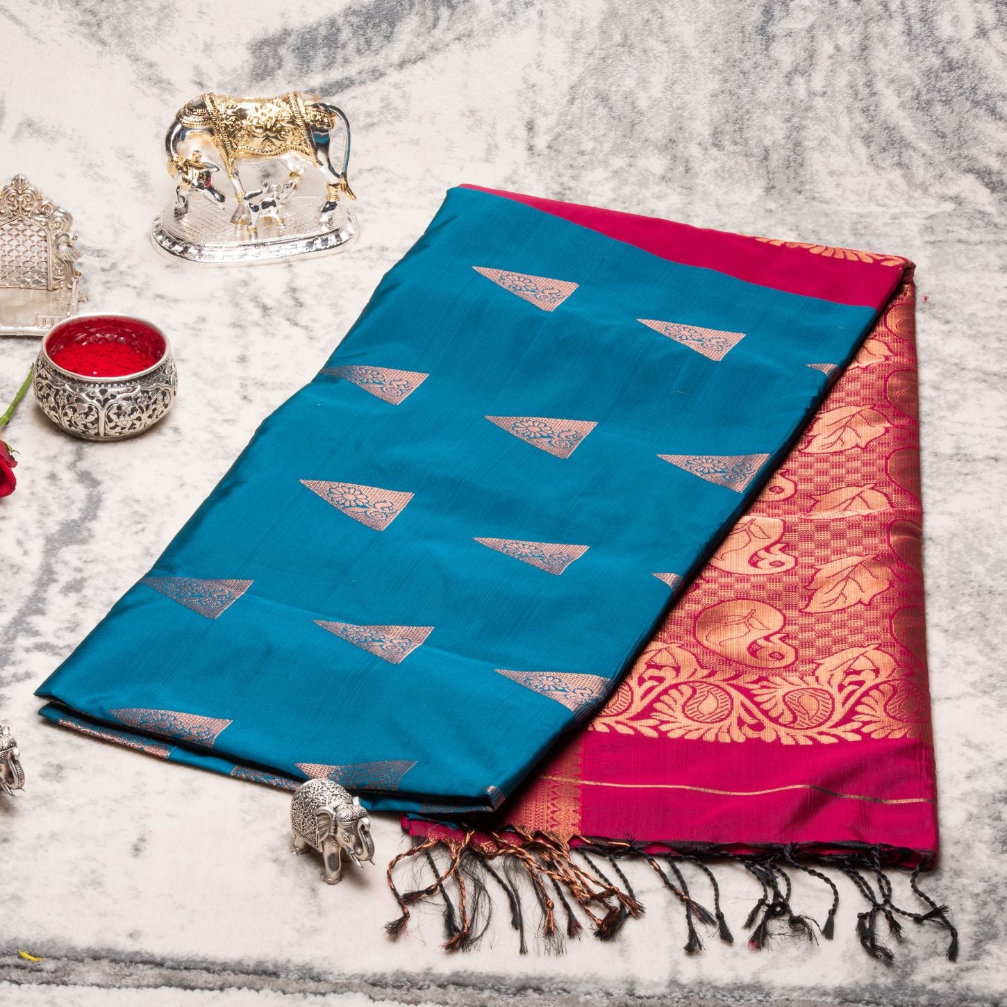 Kanchipuram Soft Thread Dark Sea Blue Silk Saree | KA10037