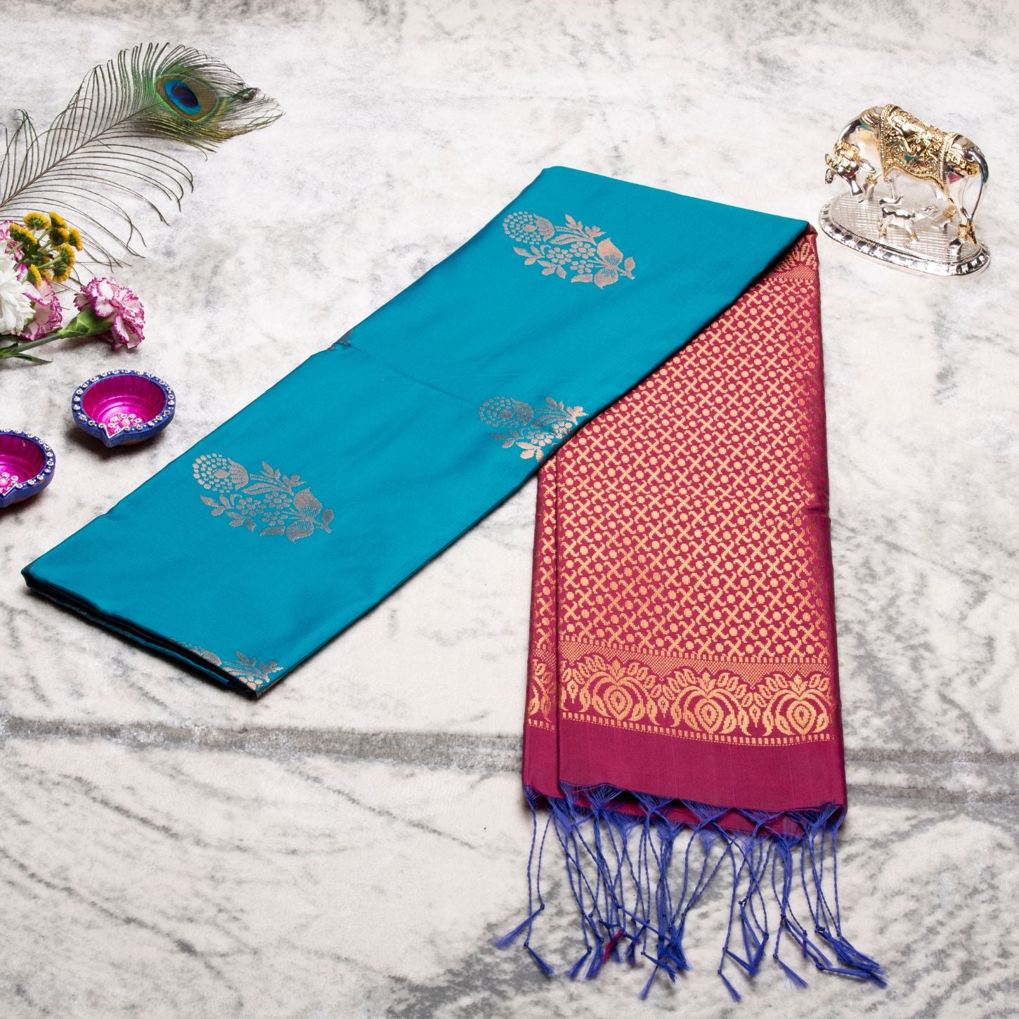 Kanchipuram Thread Teal Silk Saree | KA10031