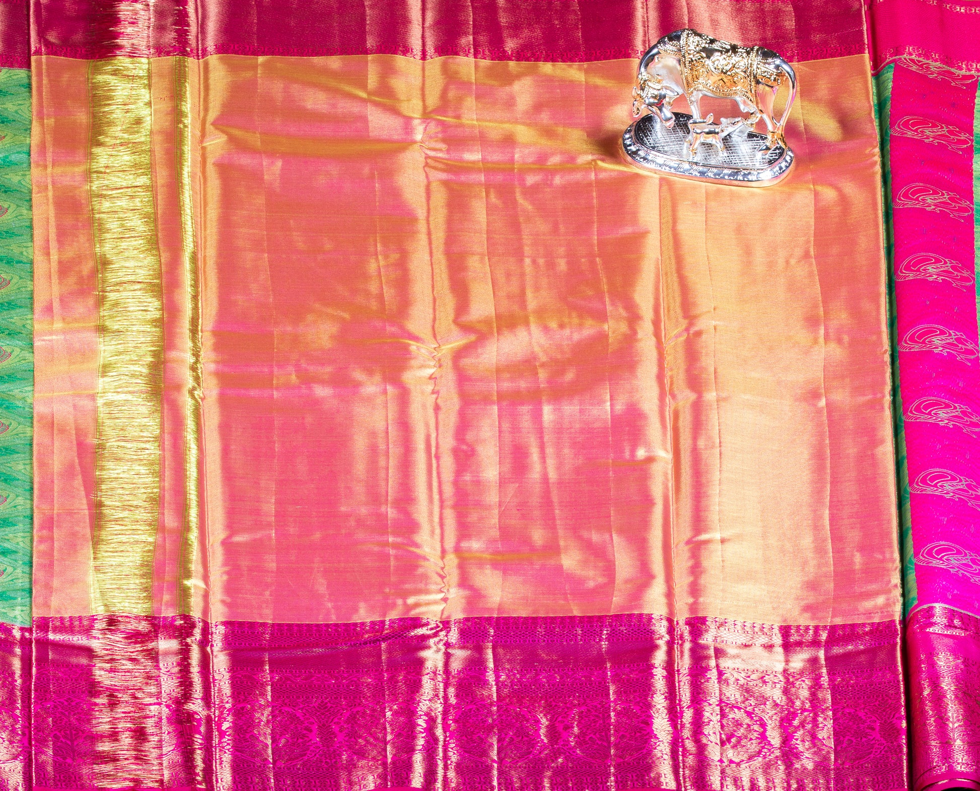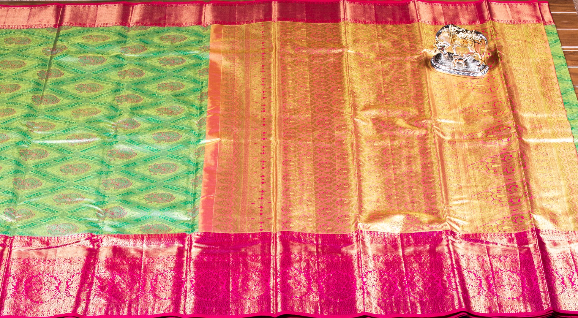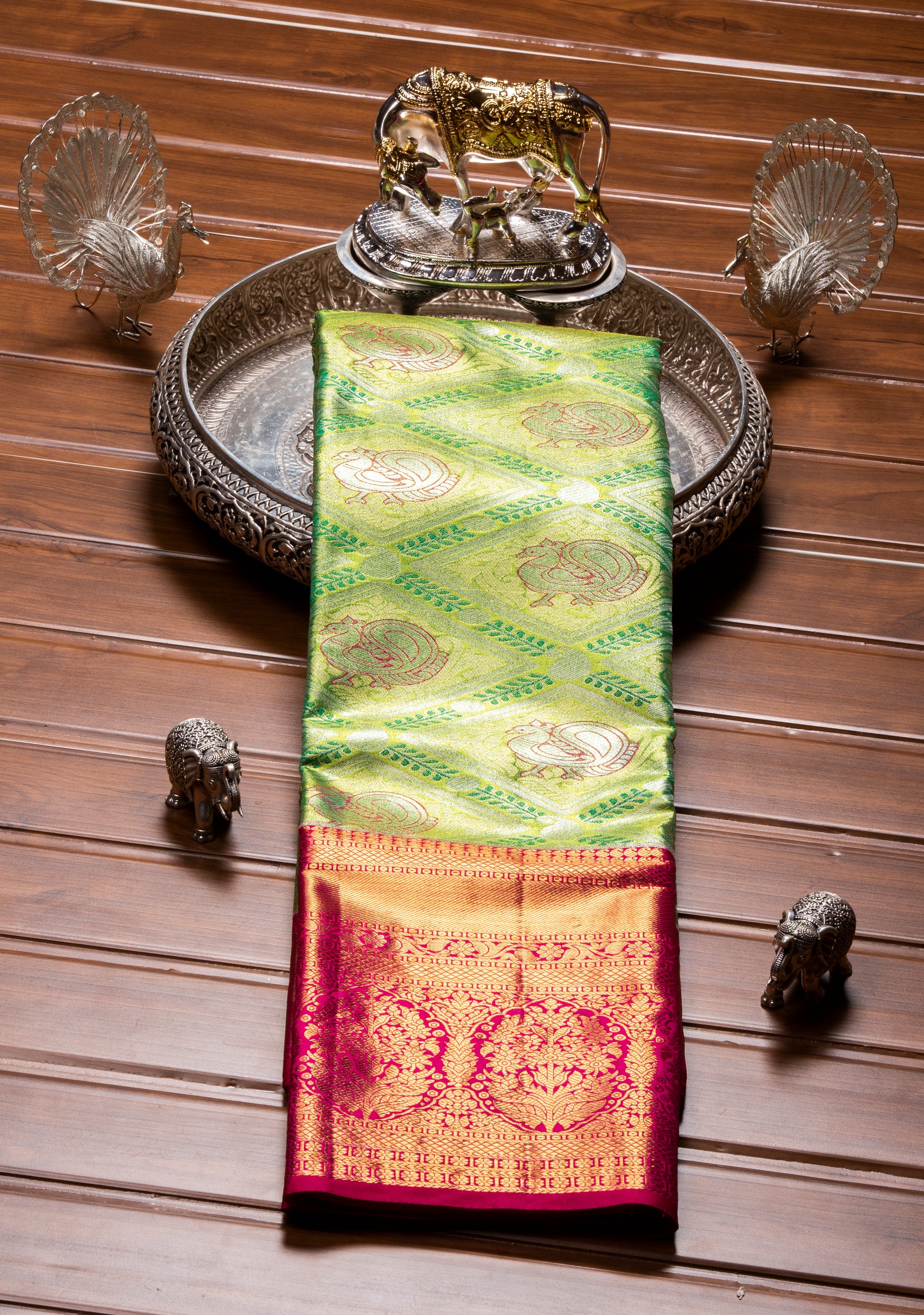 Kanchipuram Tissue Parrot Green Silk Saree | KA10179