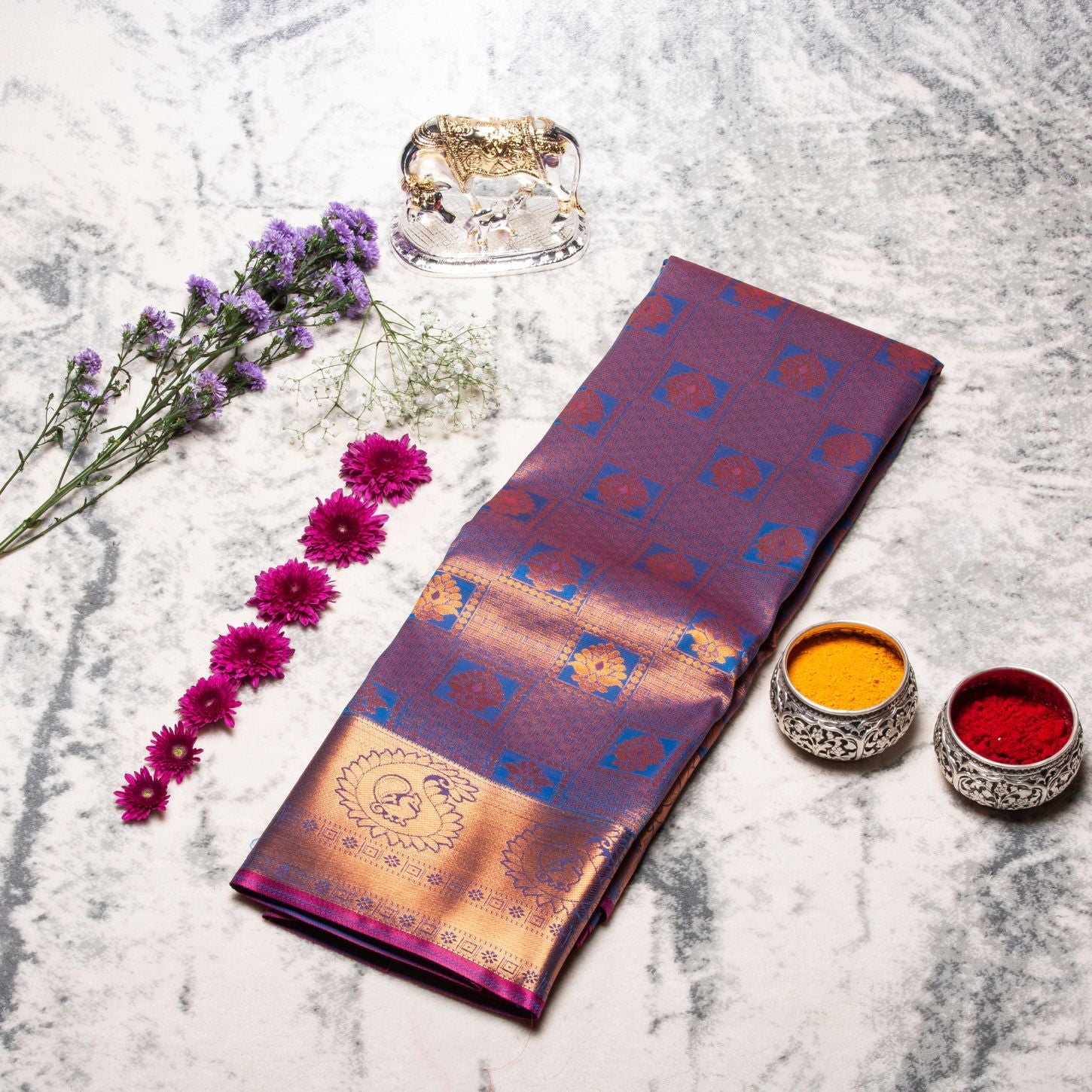 Kanchipuram Tissue Ananda Blue Silk Saree | KA10186