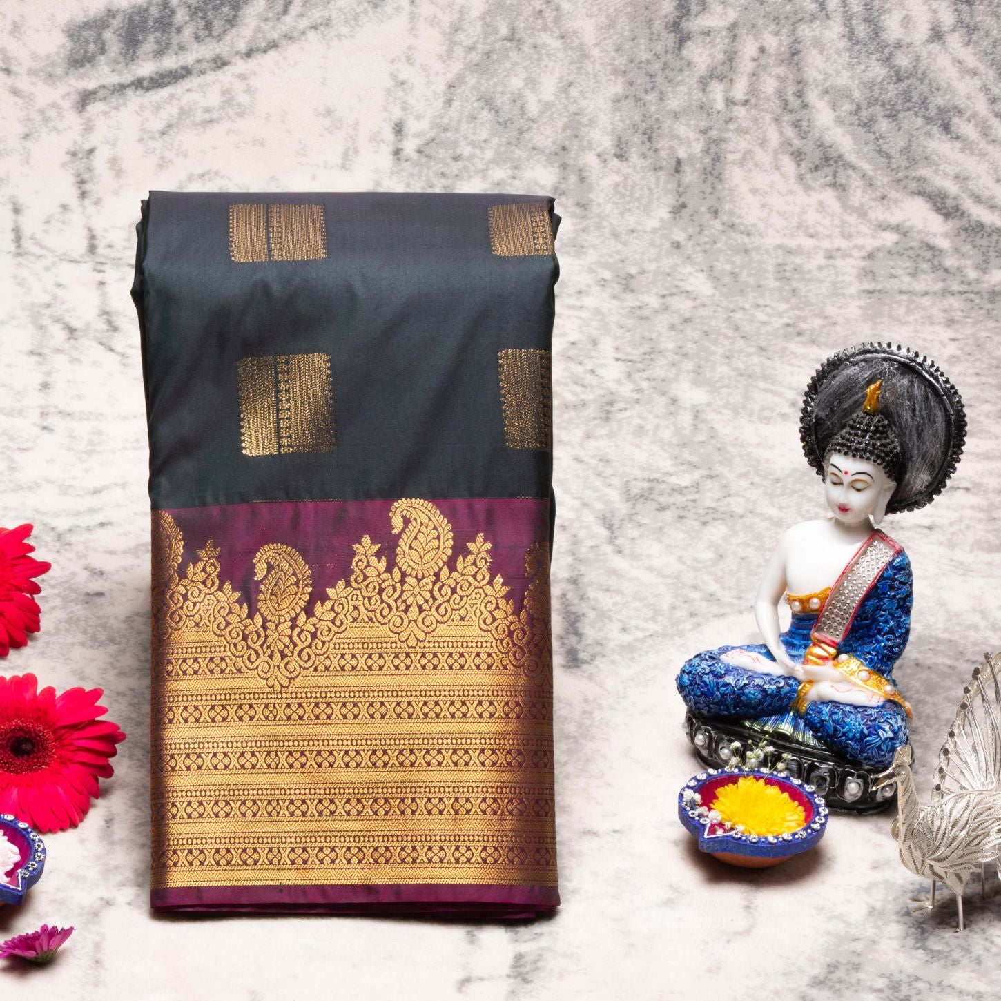 Kanchipuram Traditional Hunter Green Silk Saree | KA10129