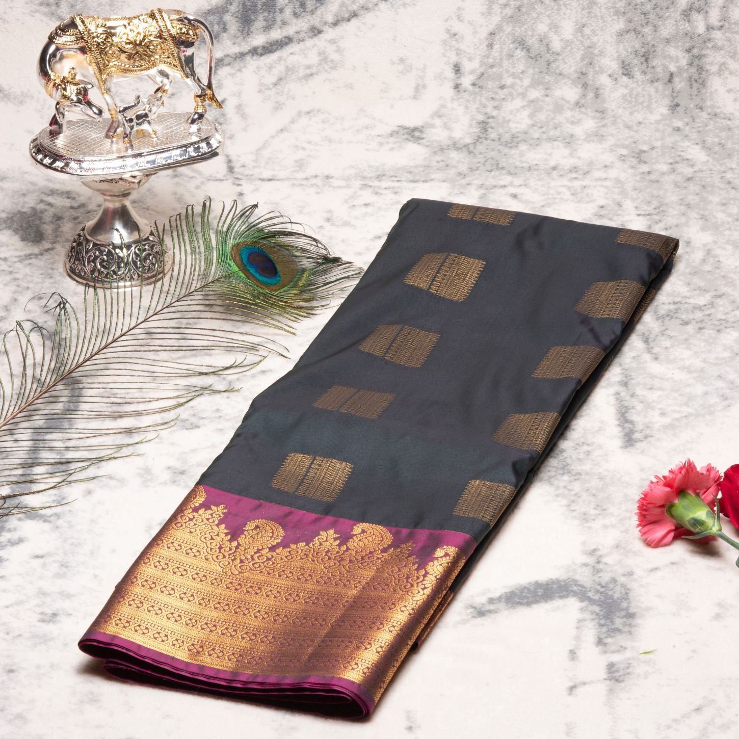 Gopuram With Gold Zary Line With Contrast Blouse And Rich Pallu