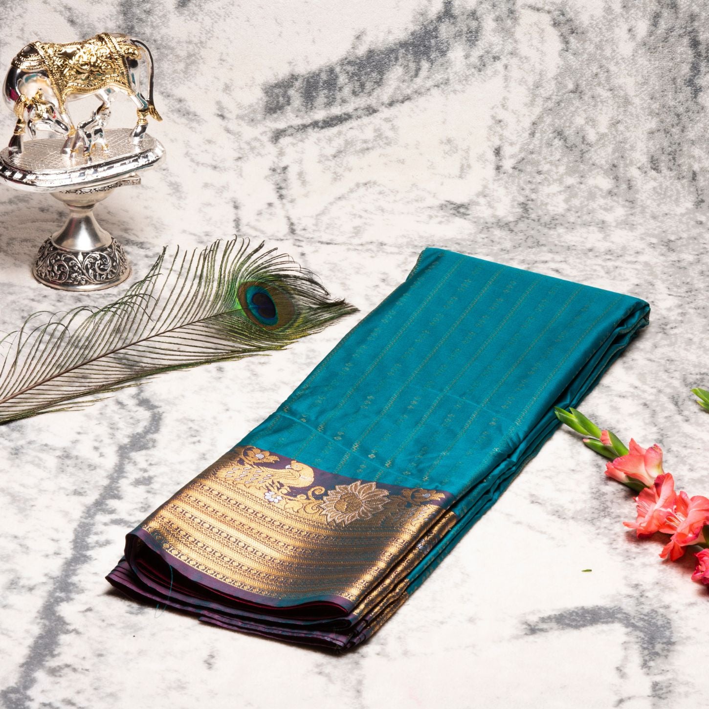 Kanchipuram Zary Terquious Green Silk Saree | KA10097