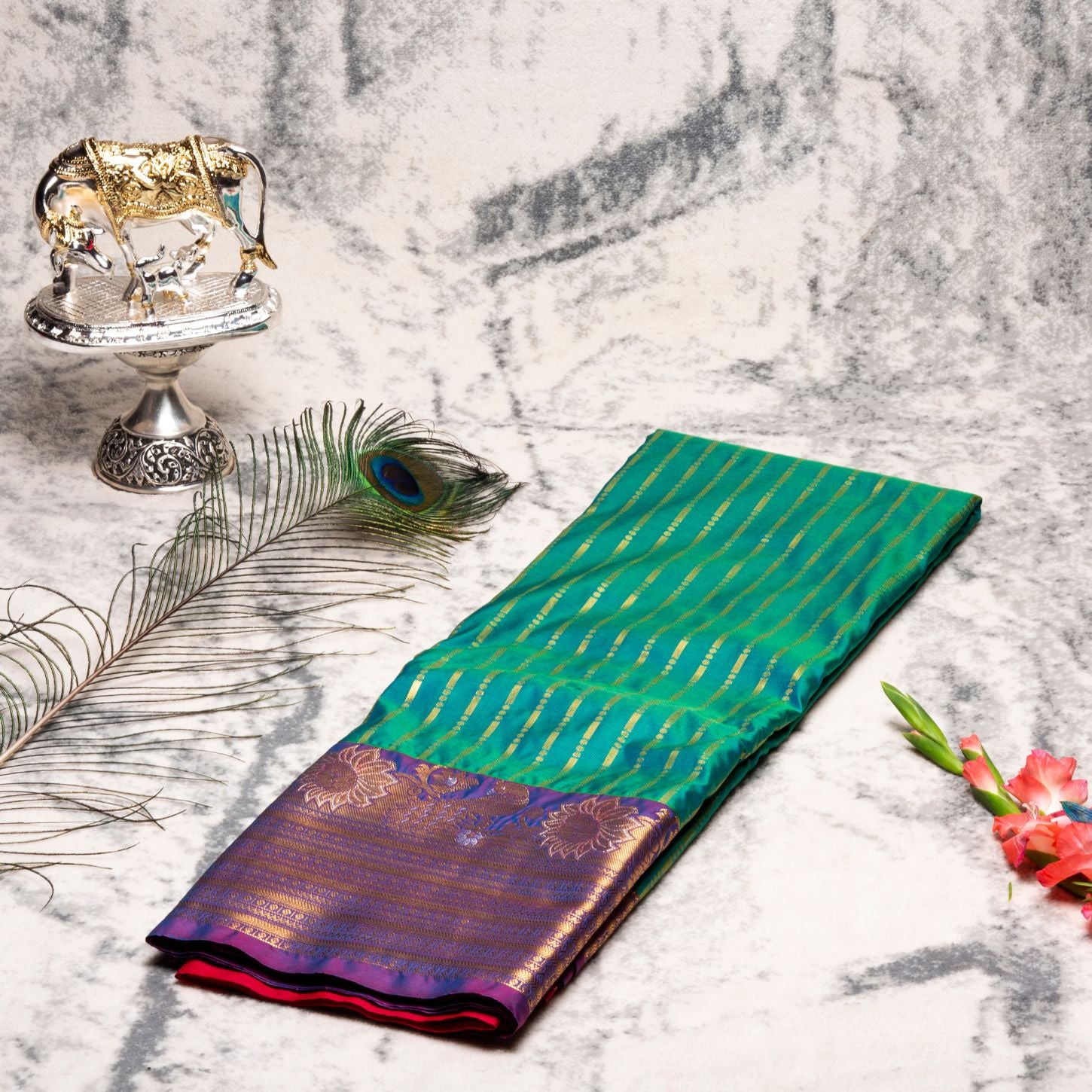 Kanchipuram Zary Medium Sea Green Silk Saree | KA10099