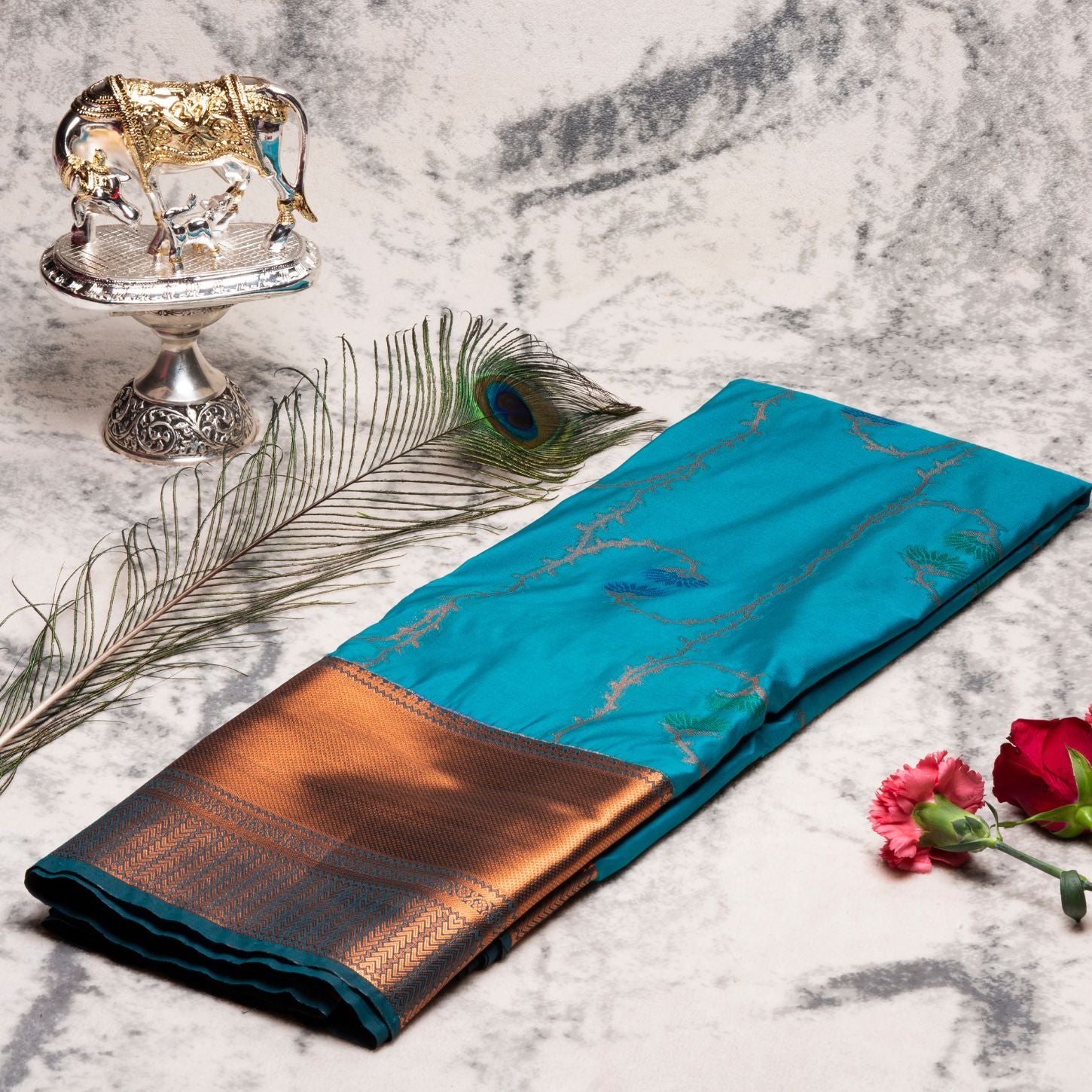Kanchipuram Zary Deep Sky Blue Silk Saree | KA10105