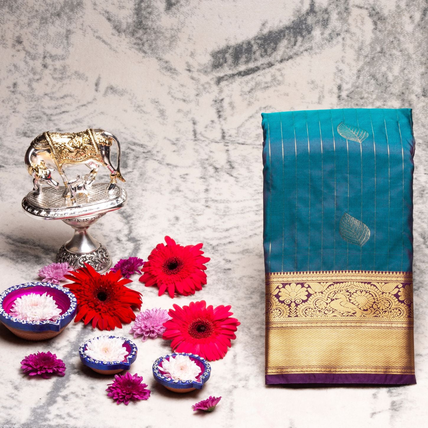 Kanchipuram Zary Dark Teal Silk Saree | KA10116