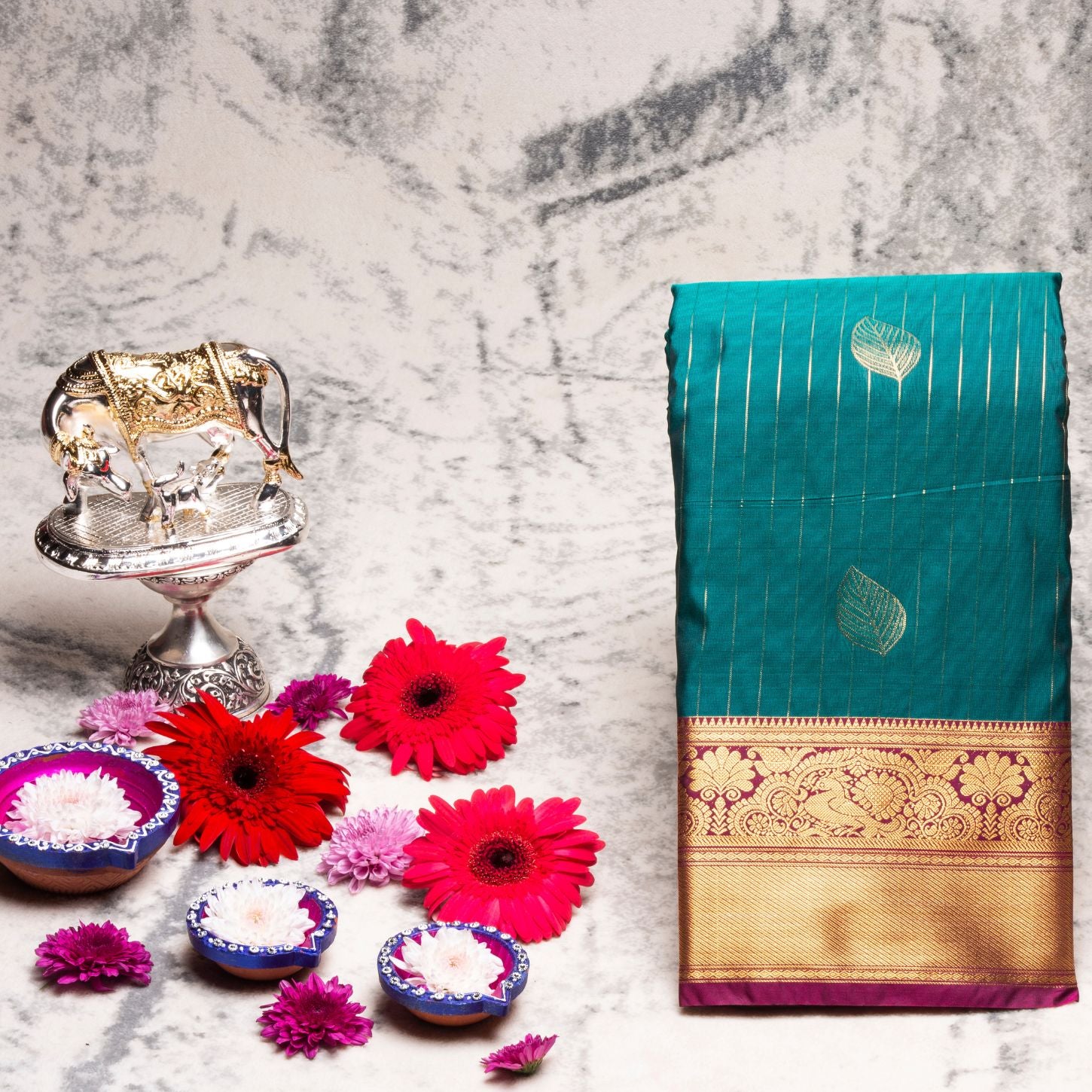 Kanchipuram Zary Dark Teal Silk Saree | KA10117