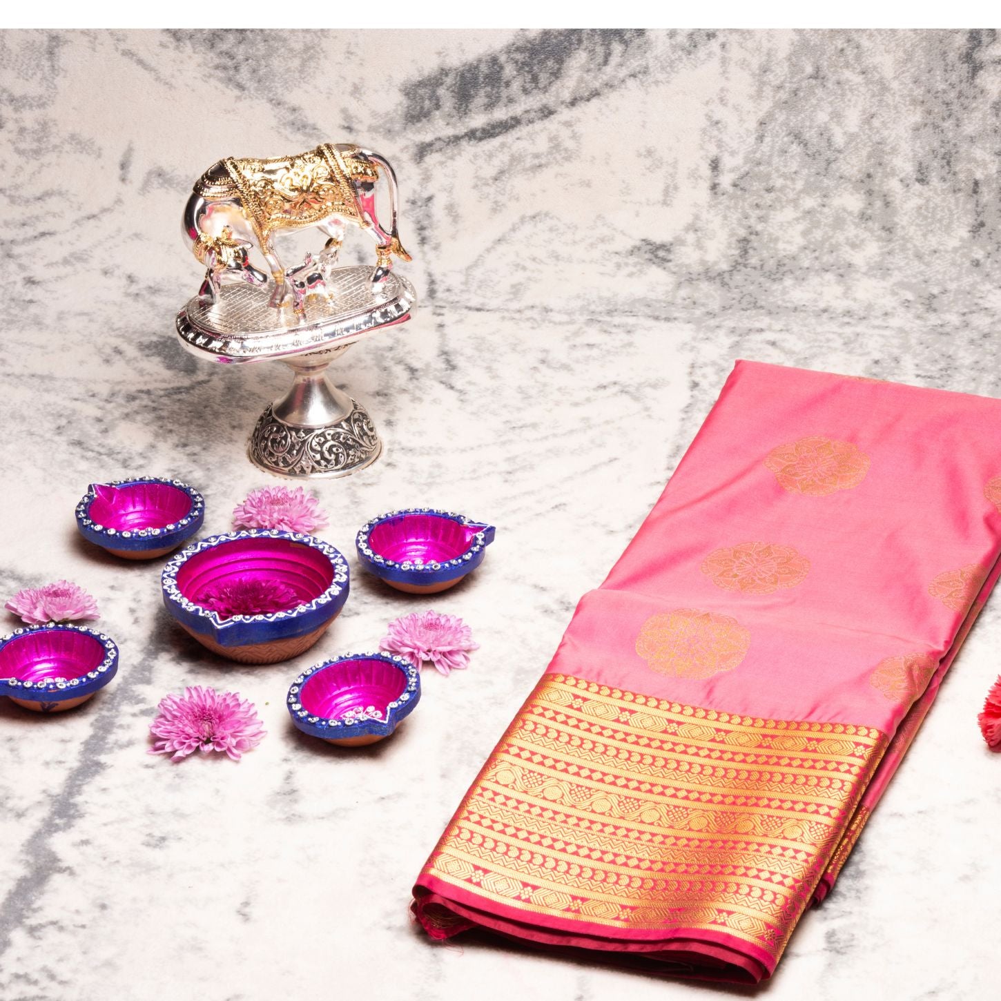 Kanchipuram Zary Tickle Pink Silk Saree | KA10119