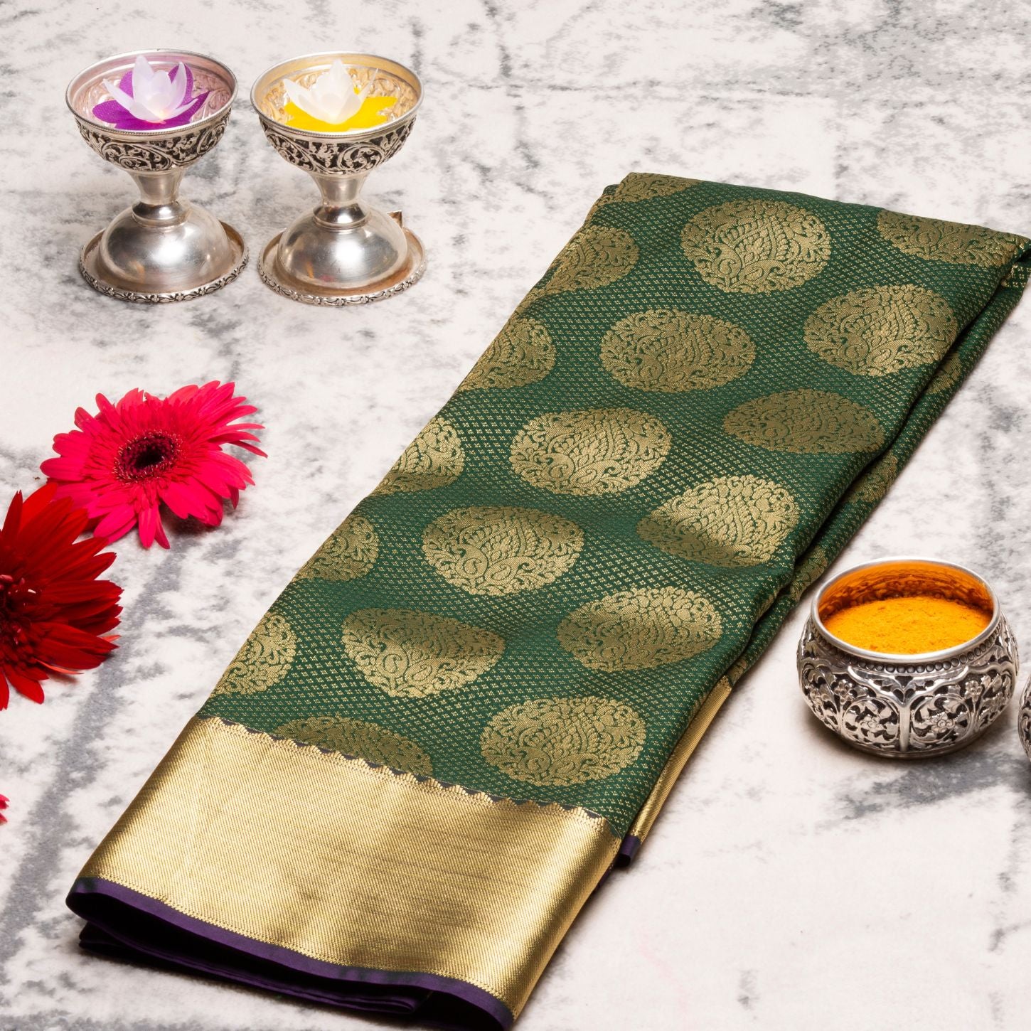 Kanchipuram Zary Hunter Green Silk Saree | KA10140