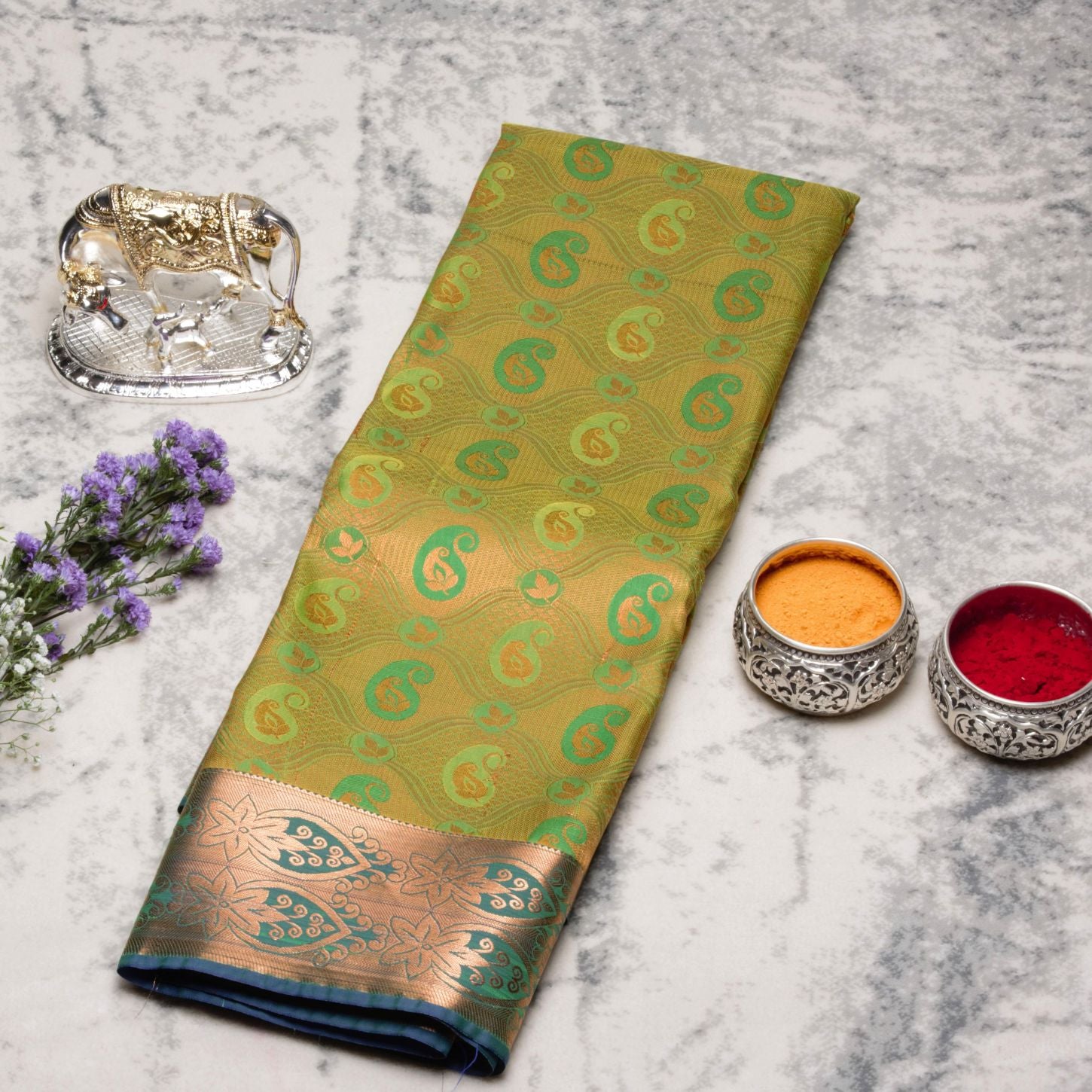 Kanchipuram Zary Green Yellow Silk Saree | KA10146