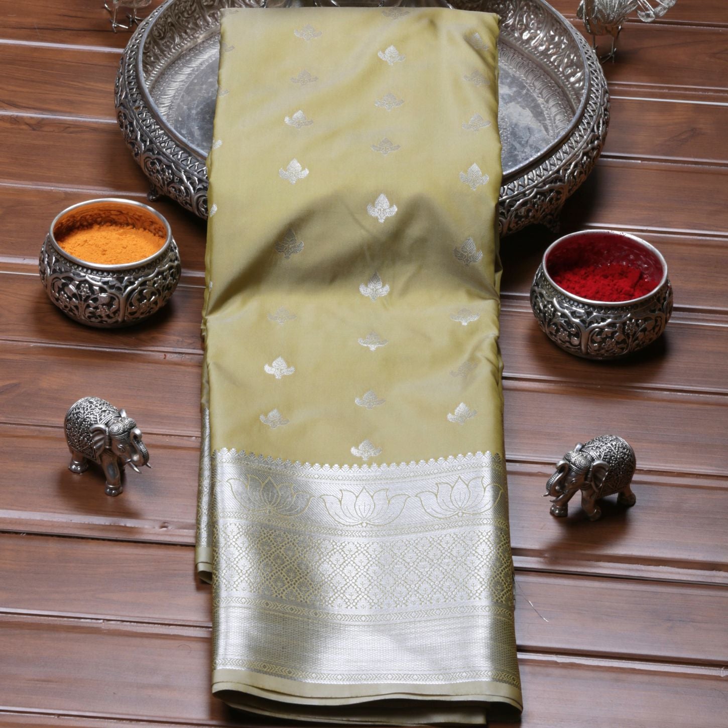 Silver Butta Light Golden Yellow Silk Saree | KA10056
